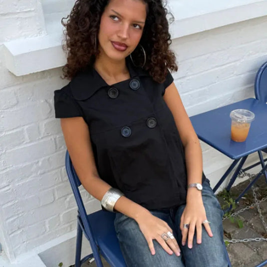 Big Button Short Sleeve Blouse