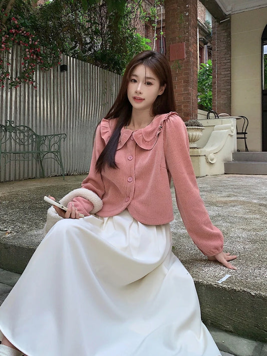 Corduroy Collar Cardigan