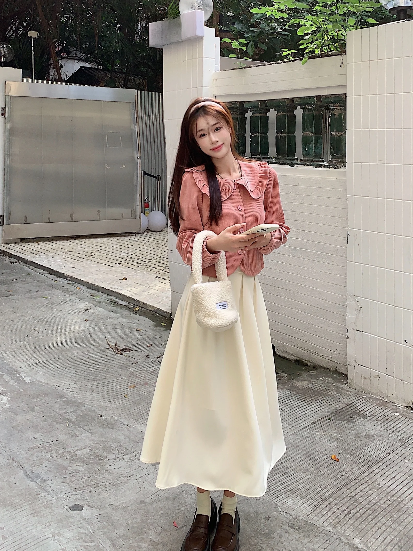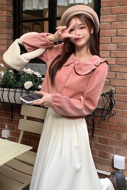 Corduroy Collar Cardigan