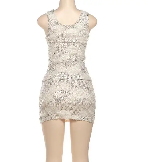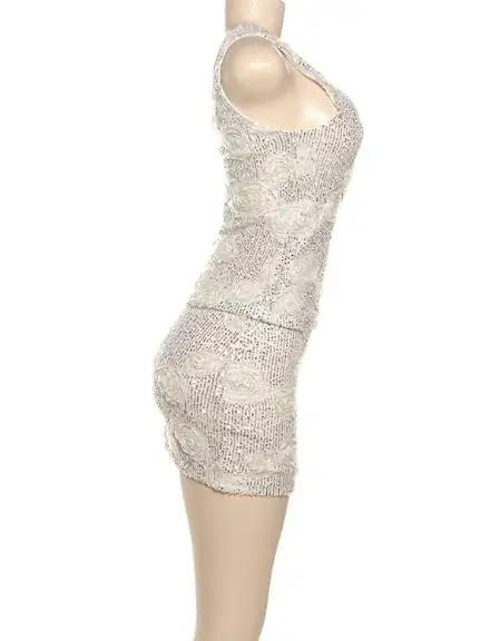 Floral Sequin Decor U-Neck Vest Top & Mini Skirt Set
